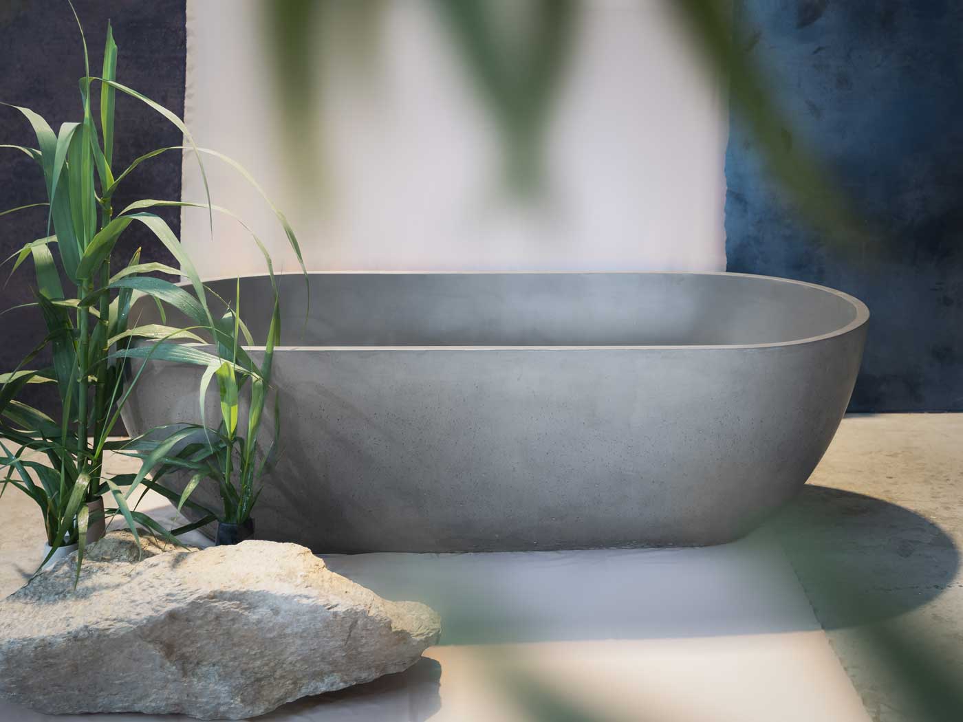 Bañera exenta realizada 100% en concreto reforzado. Una pieza única, atemporal y cálida.