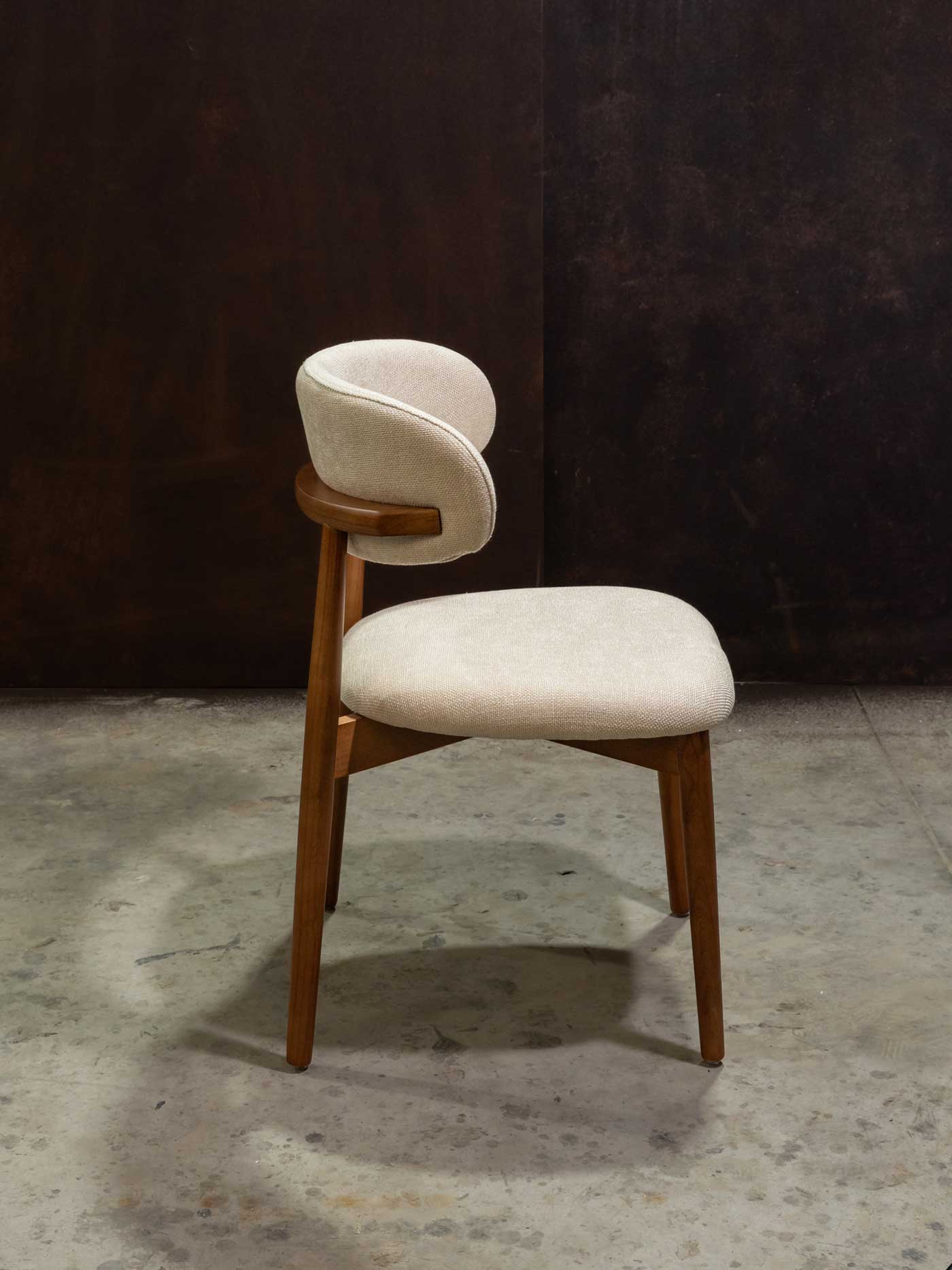 Silla de madera maciza de FRESNO. Con tapizado con tratamiento antimanchas. Cómoda y que se adapta a cualquier espacio.
