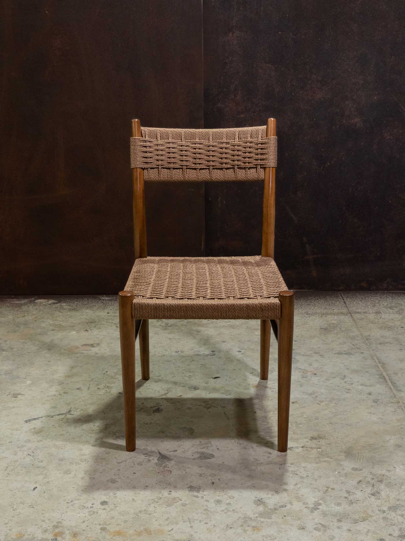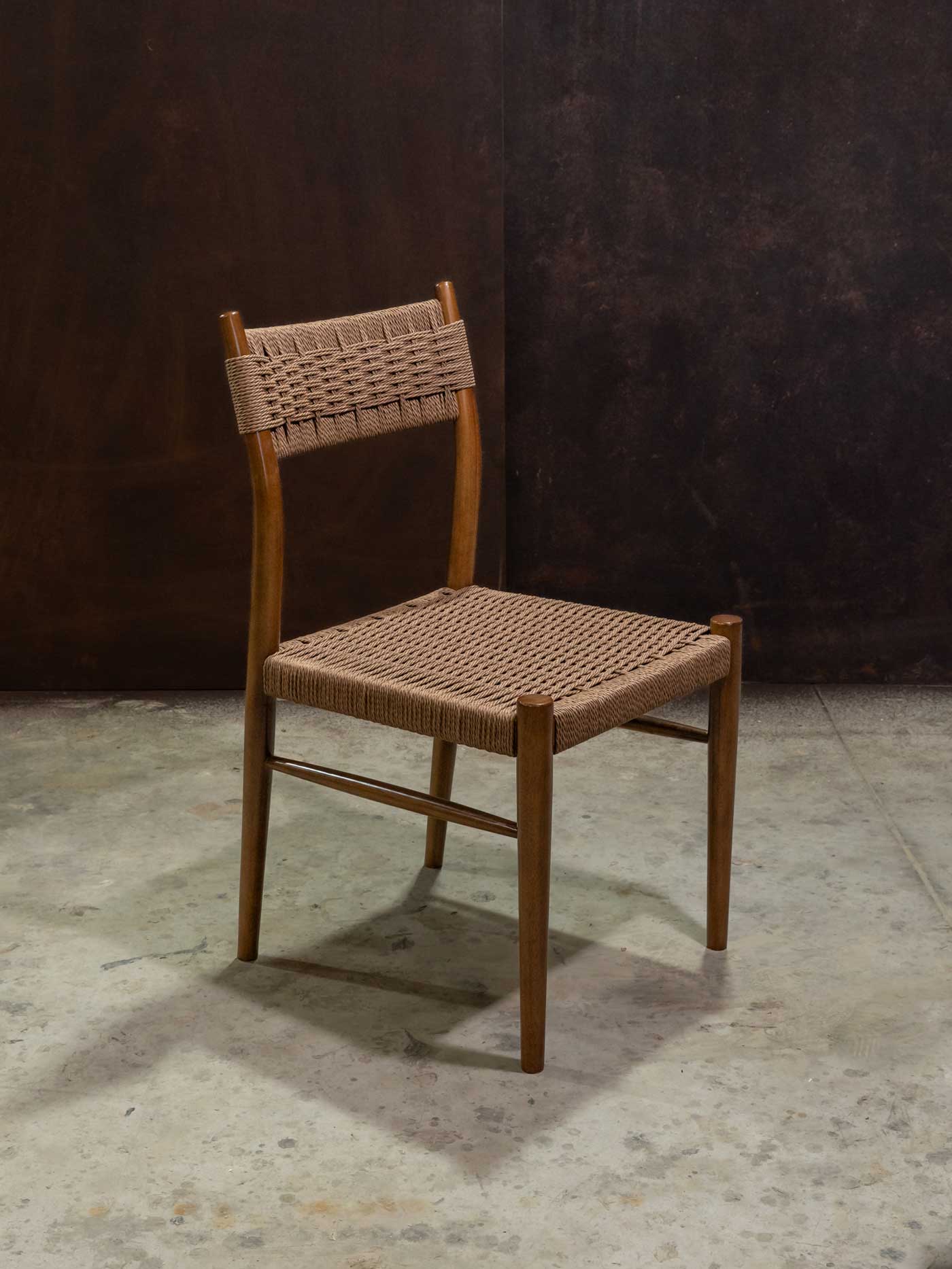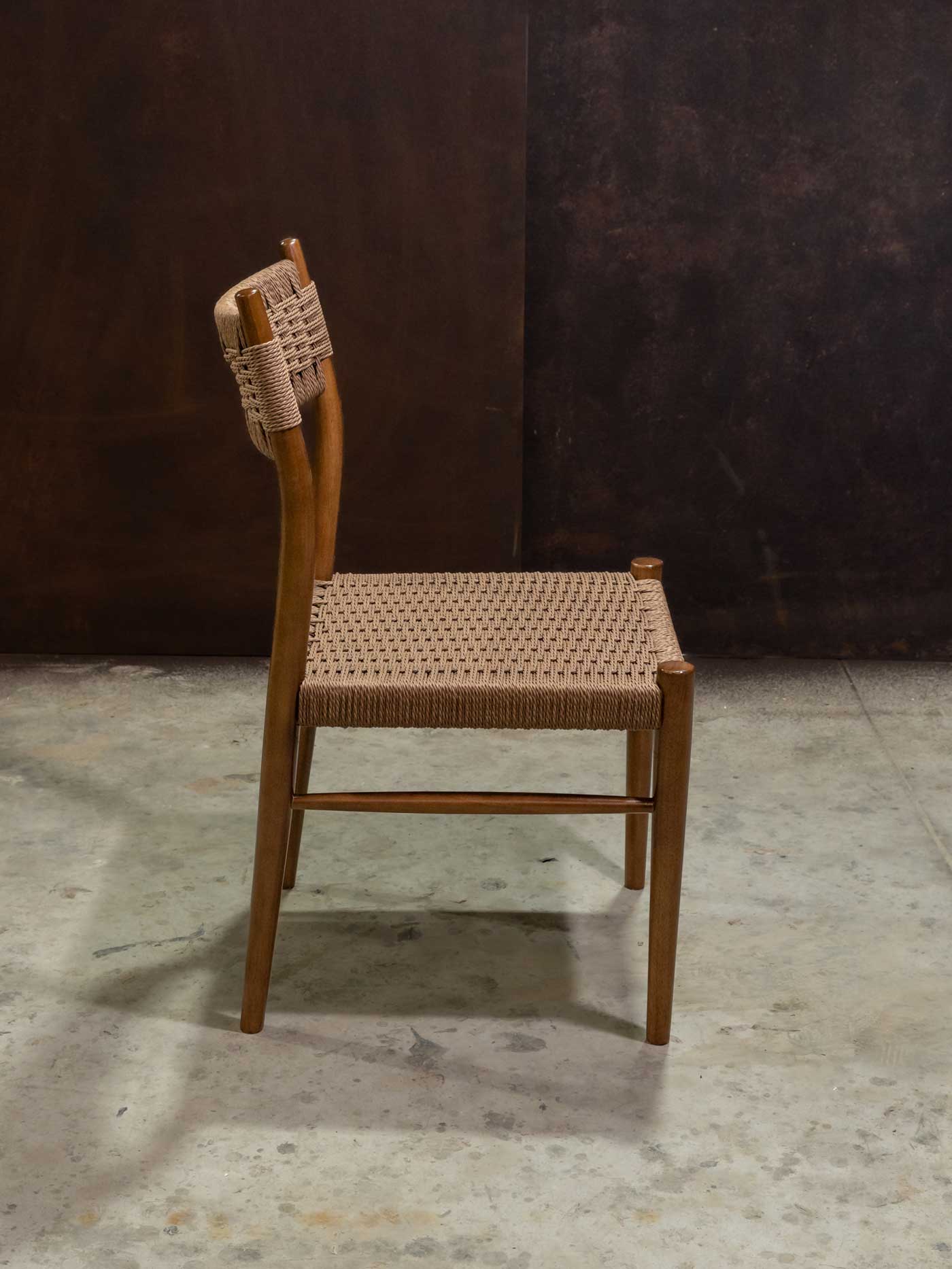 Silla de madera maciza de Roble con encordado a tono. Clásica y funcional.